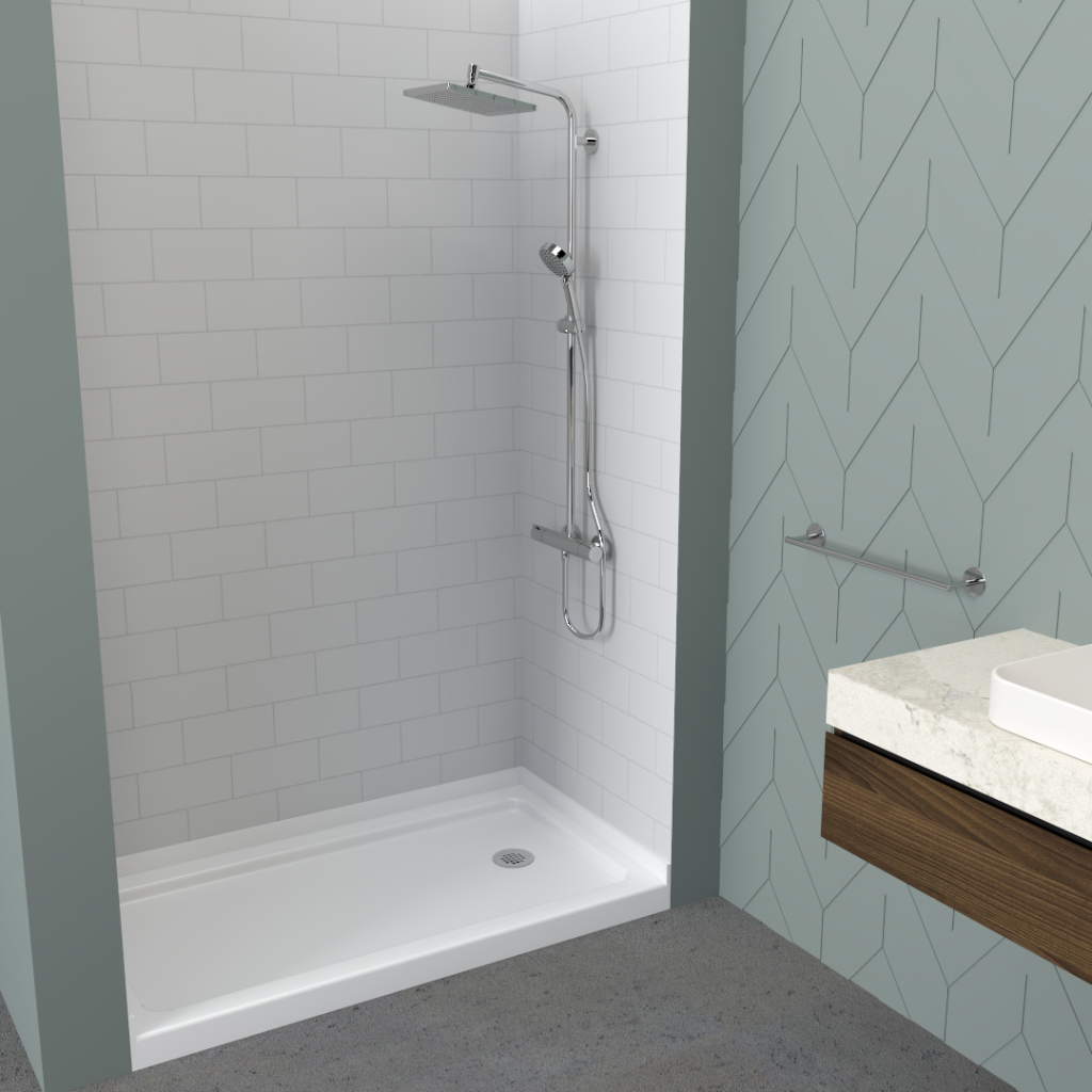- A solid grout-free, non-porous surface with ADA rated slip-resistant finish